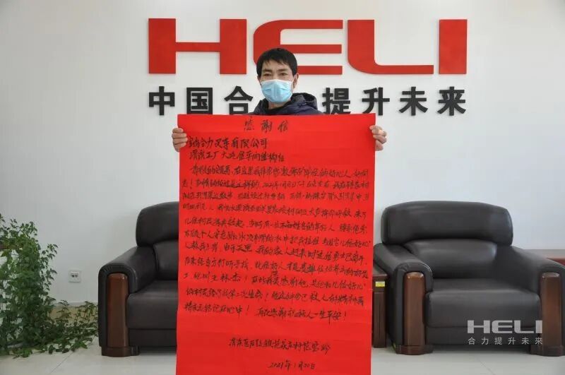幾天來(lái),落水村民一直在尋找著救命的恩人,經(jīng)過(guò)多方打聽(tīng),得知這位好心人是來(lái)自寶雞合力叉車有限公司渭濱廠區(qū)大噸位的一名電焊工,在寶雞合力工作將近10年。2月1日,落水村民懷著感恩的心情,將一份感謝信送到了寶雞合力工會(huì),感謝合力培養(yǎng)出這樣一名優(yōu)秀的好員工,不僅救了他,還挽救了他的家庭。